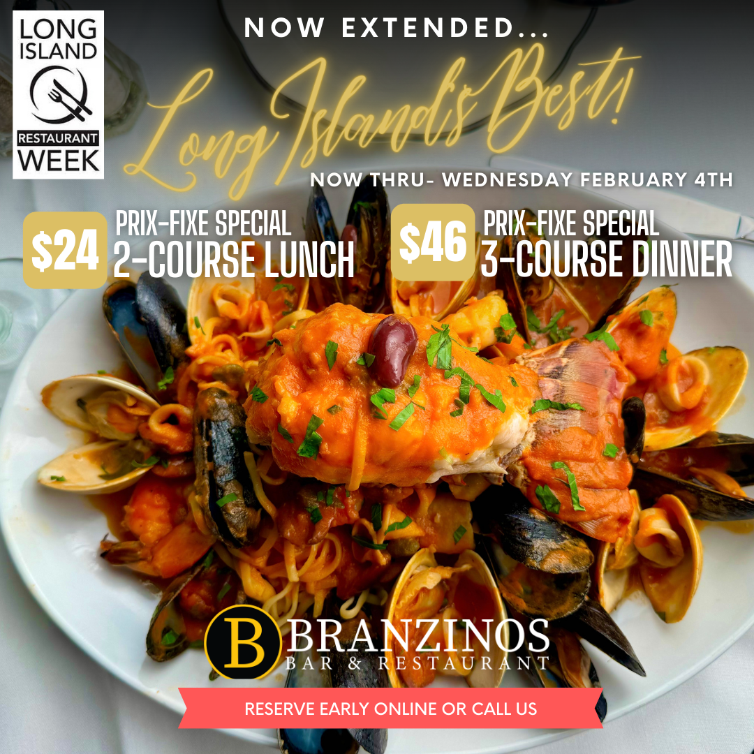 Nestled in Huntington, Long Island, on Route 110, Branzinos Restaurant is the Best Italian seafood restaurant with a divine fusion of fresh fish, sumptuous pastas, and succulent steaks and chops. Renowned for its exquisite culinary craftsmanship, Branzinos beckons diners with Chef-select weekly specials, promising an ever-evolving dining experience. Open 7 days a week, it stands as a beacon of culinary excellence to indulge in an unforgettable dining adventure where passion and perfection meet.