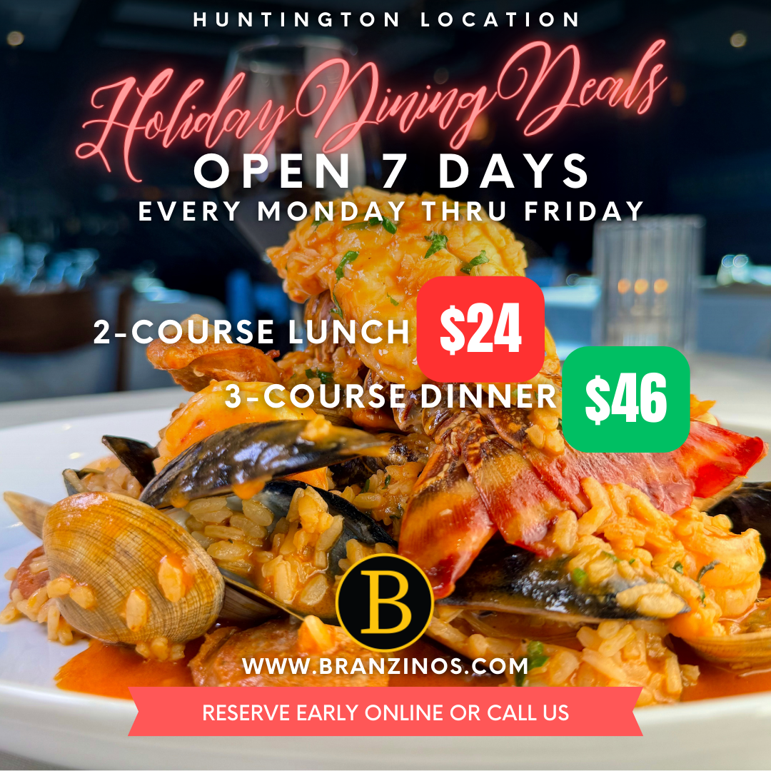 Branzino’s, nestled in Huntington, presents a delectable treat everyday. Our menu boasts chef-selected appetizers, entrées, and desserts, making it a Long Island favorite. This culinary experience is available 7 days a week so be sure to save room at the table & make reservations in advance!